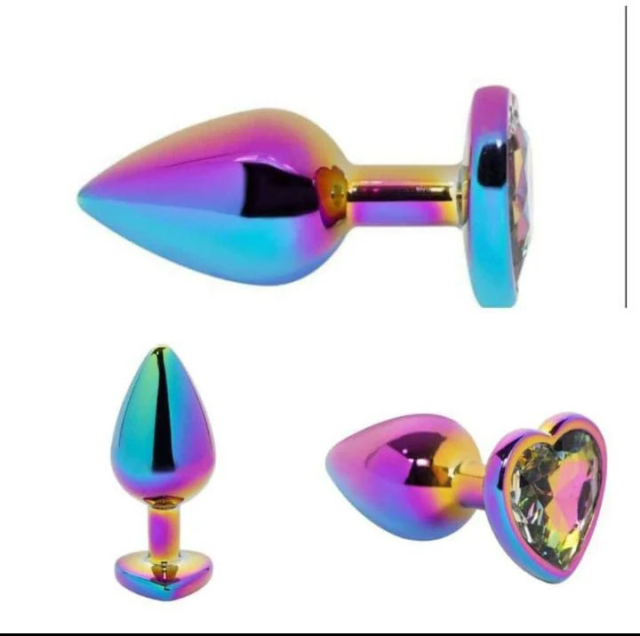 Plug anal metálico con joya corazón de colores